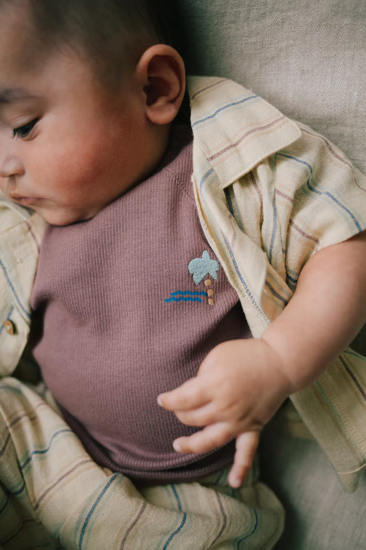 Overslag romper Lasse - Biologisch katoen - Corduroy rib pink/roze - Riffle Amsterdam