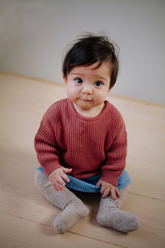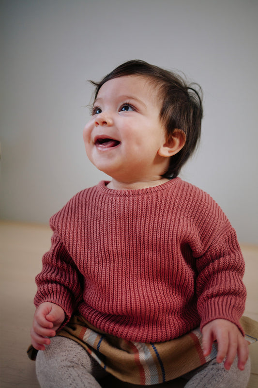 Gebreide trui Mees - Biologisch katoen - Baksteenrood - Riffle Amsterdam