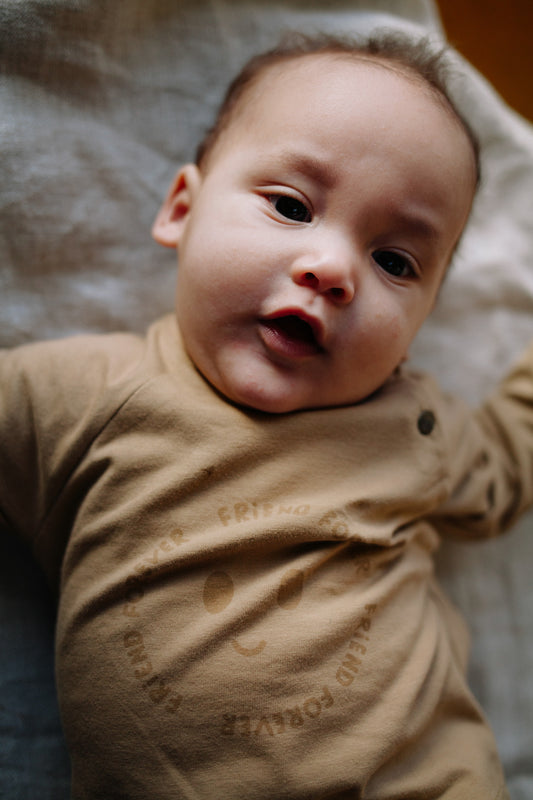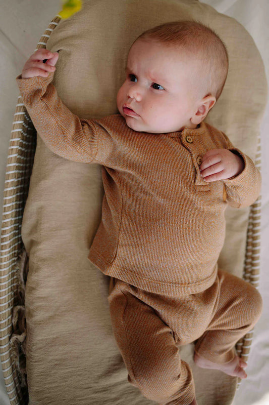 Top lange mouw Moon - Biologisch katoen - T shirt Moon lsl combo knit brown - Riffle Amsterdam